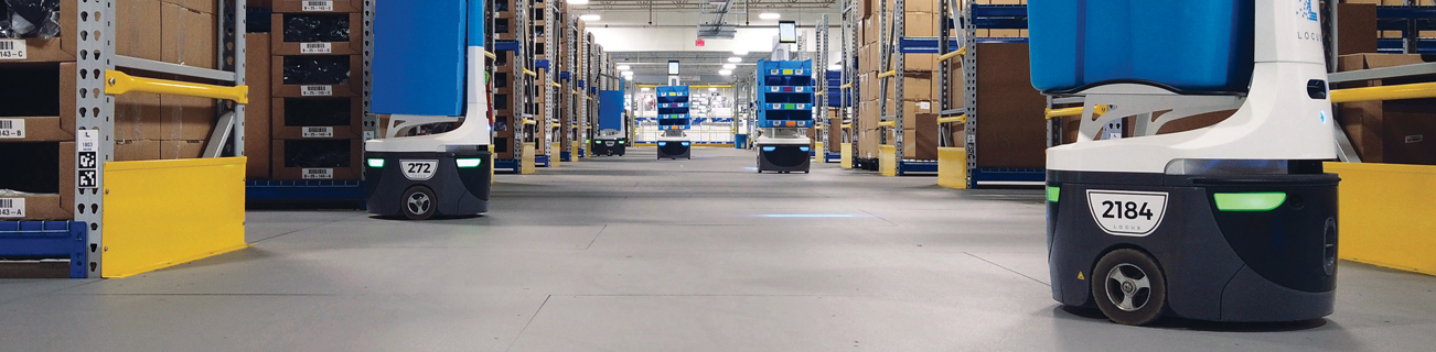 Jeffrey Cody, Director at Locus Robotics, explains “Each robot is equipped with scanners and totes or shipping cartons. The Locus system optimizes the orders on the bot and the bot autonomously navigates the most efficient path from location to location where associates are there to quickly pick items to complete the orders. This is far safer and more efficient than associates pushing carts around with the picked items or walking long distances between picks. Our robots handle the travel and transportation allowing workers to spend more time working and less time walking.”