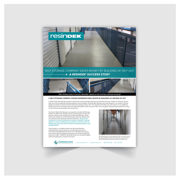 Cubic Designs is a strategic partner and stocking distributor of ResinDek floor panels, which are manufactured and sold by Cornerstone Specialty Wood Products, LLC®.