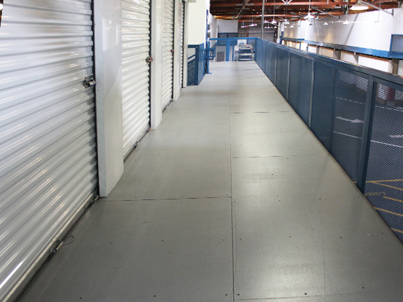In 2003, Pacific Mini Storage wanted to expand their enclosed facility located just outside San Francisco, California. However, with the high cost of land, traditional horizontal expansion wasn’t feasible. So Pacific Mini Storage hired Cubic Designs to “go vertical” with the design and install a mezzanine directly above the existing storage units. This doubled the facility’s size and revenue, as an additional 54,000 square feet of storage space was added. ResinDek panels, structural steel, and corrugated metal decking provided the ceiling for the first level and flooring for the second level.