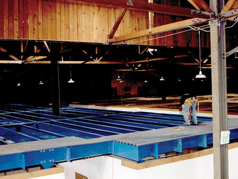 Challenge: Provide a cost-effective flooring solution for a new second-level mezzanine being put above existing storage units