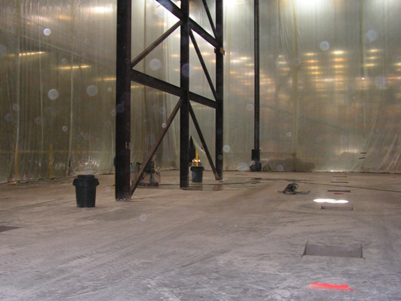 ResinDek mezzanine flooring weighs 30 lbs. per square foot (13.6 kg per square meter) less than a concrete mezzanine floor, so on this 90,000 square foot (8,361 square meters) project weight was reduced by 2.7 million pounds (1.3 million kg). Because of the lighter loads, the columns on the ResinDek mezzanine were reduced in size from 14″ x 31 lbs. per foot (355.6 mm x 14.1 kg per meter) to 10″ x 24 lbs. per foot (254 mm x 10.9 kg per meter). This resulted in cost savings in structural steel as well as labor to erect the steel mezzanine floor substructure. Both bar joists were 18″ deep, but ResinDek required less steel because the structure was lighter.
