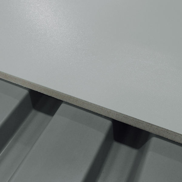 Corrugated metal deck products are available in a variety of gauges and finishes. A bright white underside is available for excellent light reflectivity, but gray primer, galvanized or stainless steel is also available. We recommend that a minimum of 20 gauge (.9 mm) metal B Deck and N Deck be used on all 3/4″ (19 mm) ResinDek flooring projects.