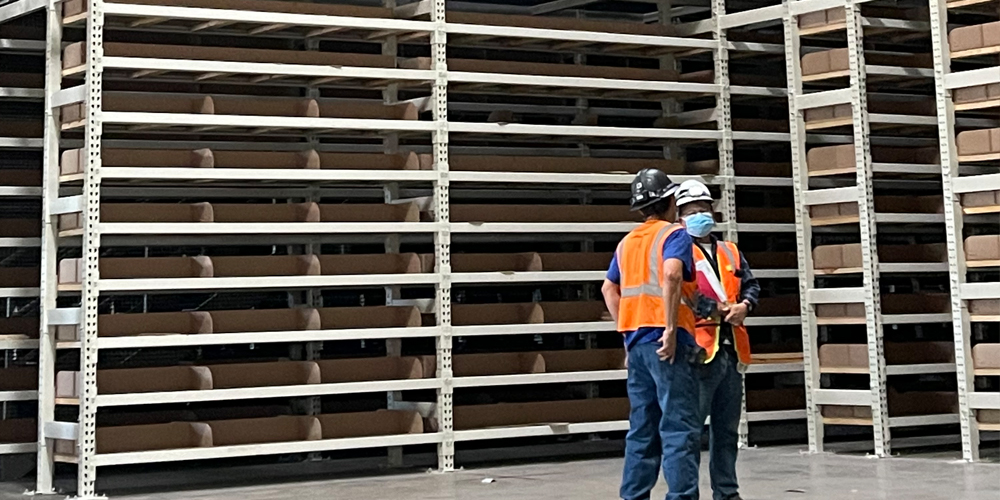 The lumber supports are manufactured in accordance with Southern Pine Inspection Bureau Standards. We furnish a #2 grade stamped Southern Yellow Pine lumber support. The supports may have custom machining to accommodate unique site requirements, including notches to accommodate the height of a step beam and the horizontal shelving members. The lumber supports have been tested extensively for this application. Load carrying capacity varies by length of support, but they have been proven to support up to 800 lbs (362.87 kg) each when the length is 48″ (1,219.2 mm) or less. The ends of lumber supports can be screwed down to rack or shelving beams at their ends.