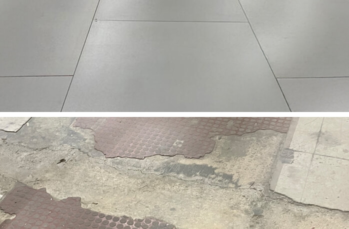 The vinyl flooring in this area had several areas that were visibly out of level. Due to the quirks of an older building, the flooring in this side of the operation was also 3/8-inch lower than the area in which the AMRs had initially been deployed.